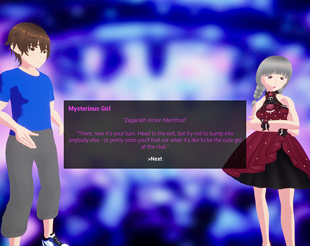 A simple wrong step, an accidental collision with a beautiful woman, has left you cursed in the dance club! Make your way to the exit to escape the curse, but be careful: Each time you bump into another patron, your body changes, piece by piece, into a beauty like the one you bumped into.